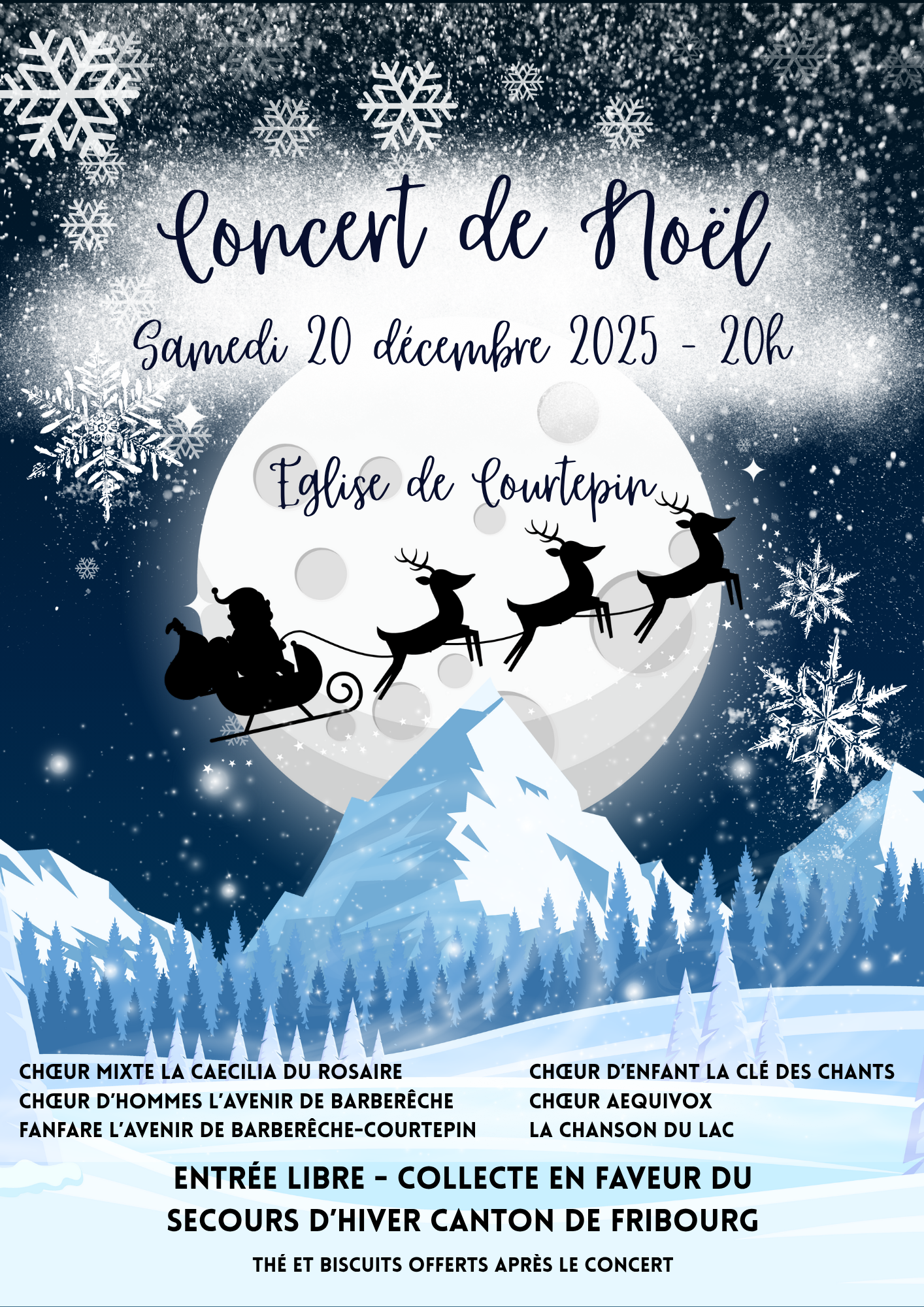 Concert de Noël des sociétés Courtepin Date 20 Déc 2025 Heure 20h00 - 22h00 Lieu Église Courtepin Catégorie Concert Partagez cet événement